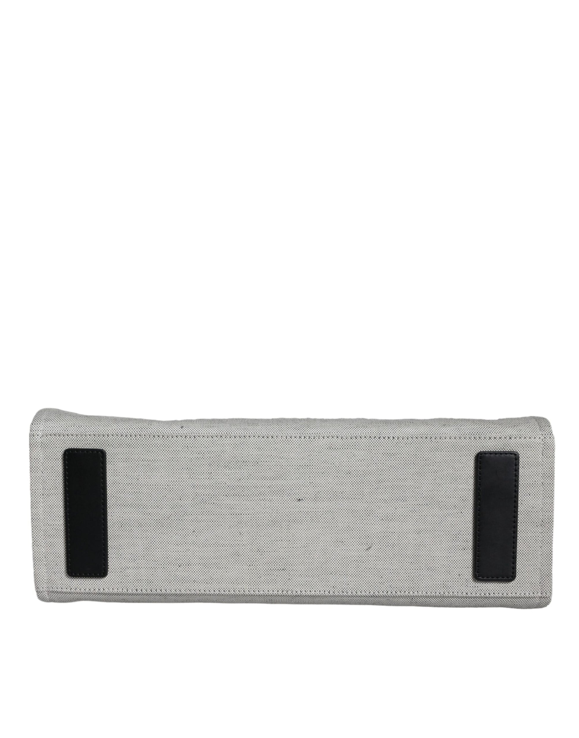 Versace White Top Handle Canvas Leather Logo Crossbody Tote Bag